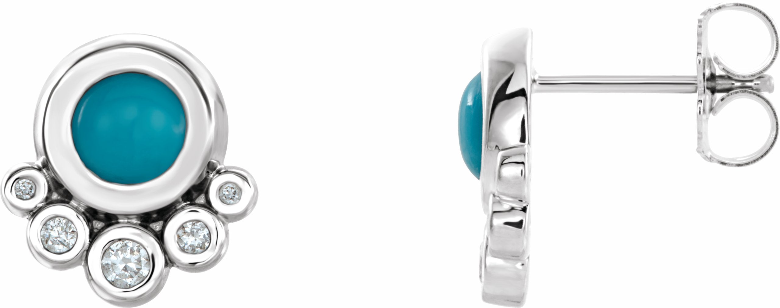 86780 / Set / 14K White / Turquoise / Pair / Polished / Genuine Turquoise And 1/8 Ctw Diamond Earrings With Backs