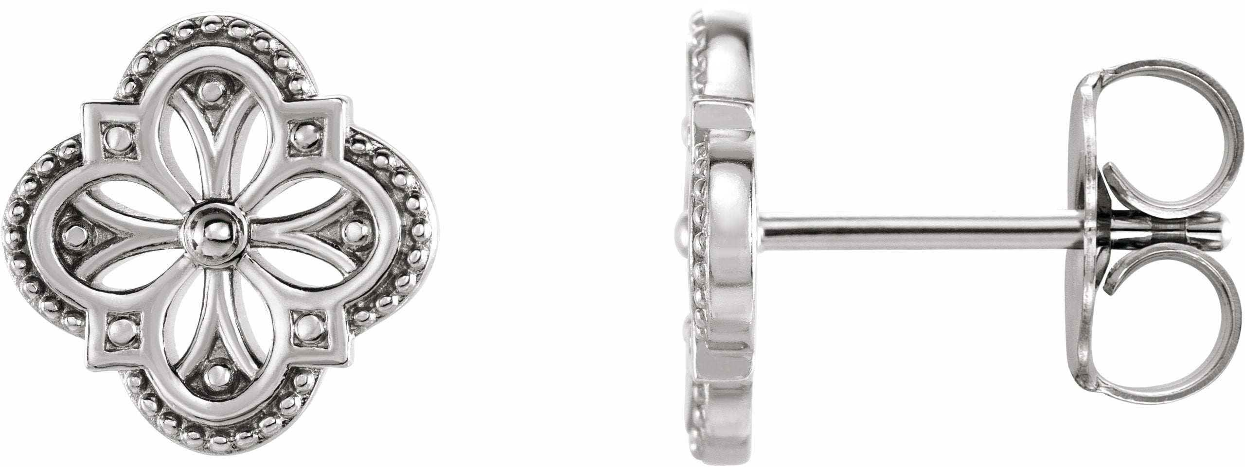 87105 / Earring / 14K White / Pair / Friction Backs Included / Polished / Vintage-Inspired Clover Earrings