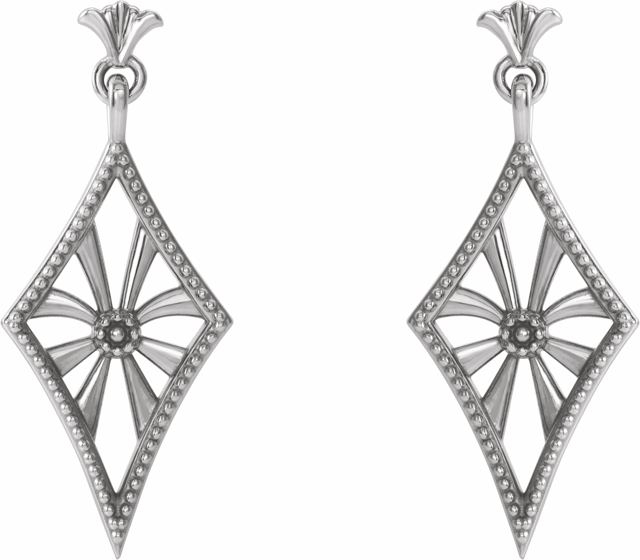 86881 / 14K White / Pair / Polished / Vintage Inspired Dangle Earring With Backs