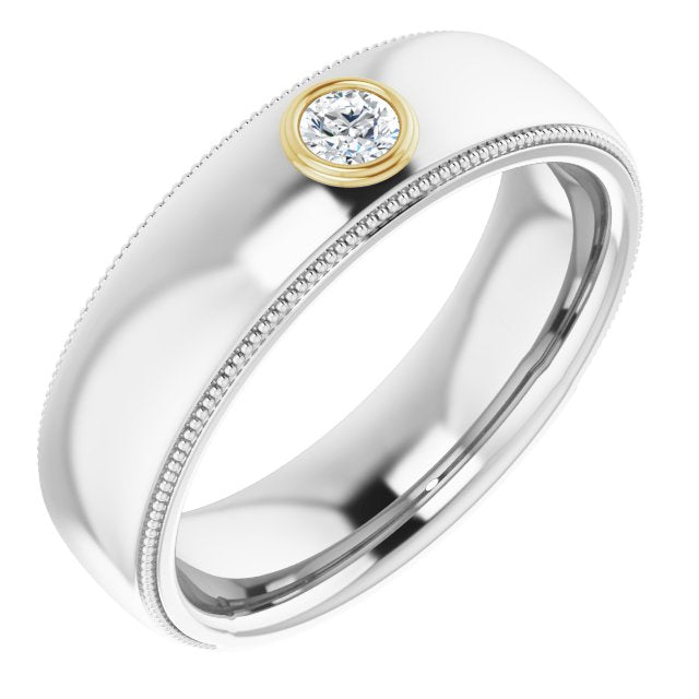 123214 / Set / 14K White/Yellow / Round / 3.4 Mm / Polished / 1/6 Ctw Mens Diamond Ring
