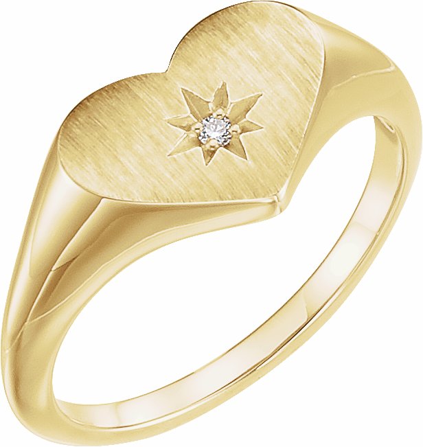 122818 / Set / 14K Yellow / Polished / .01 Ctw Diamond Heart Signet Ring