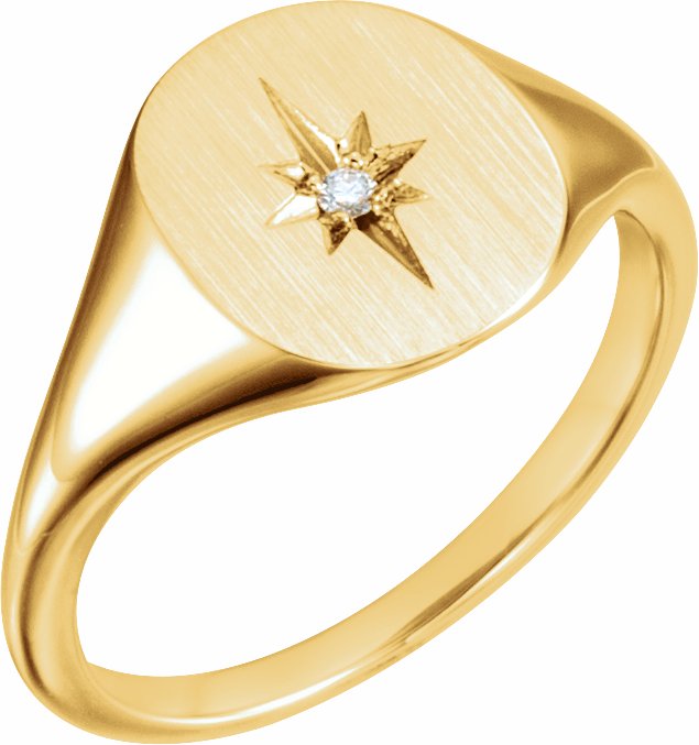 14K Yellow .02 CTW Diamond 11x10 Oval Starburst Signet Ring - 1227486001P
