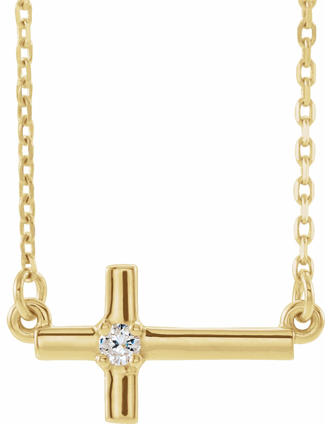 14K Yellow .03 CTW Diamond Sideways Cross 16-18 Necklace - R42356616P