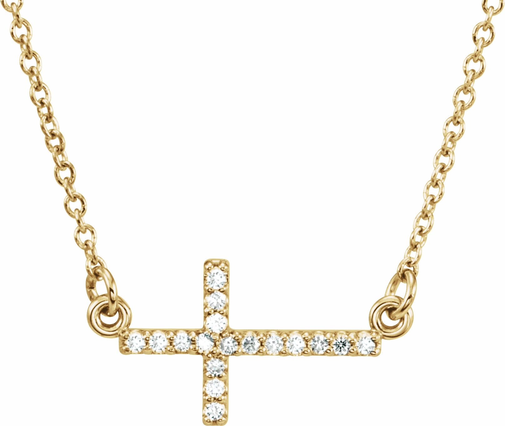 R42323 / Necklace / Set / 14K Yellow / Diamond / 0.07 Ctw / Polished / .07 Ctw Dia Sideways Cross Necklace