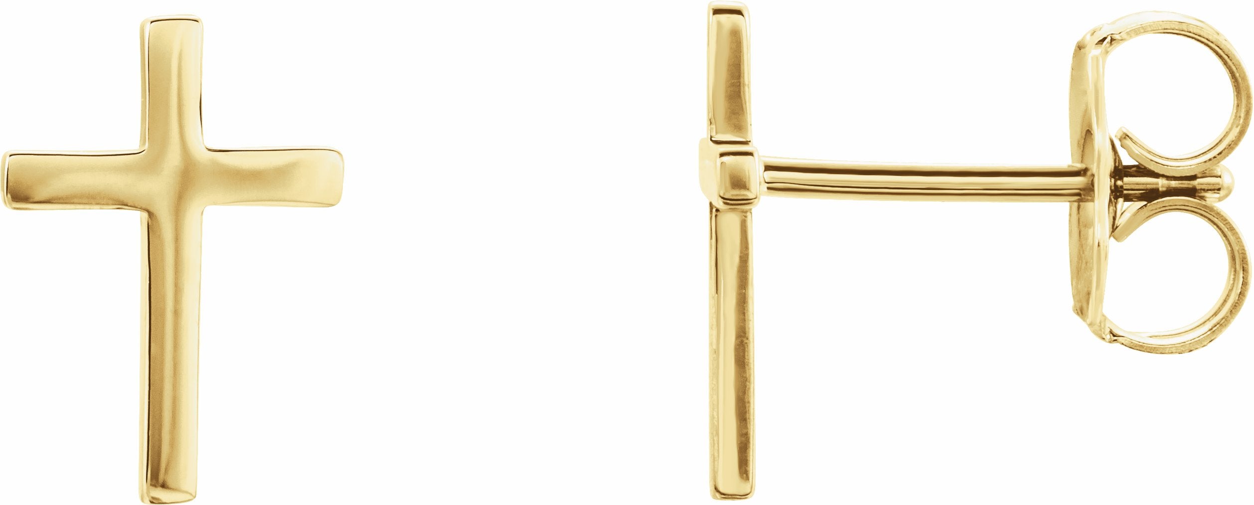 R17014 / 14K Yellow / 10 Mm / Pair / Friction Backs Included / Polished / Cross Earrings With Backs