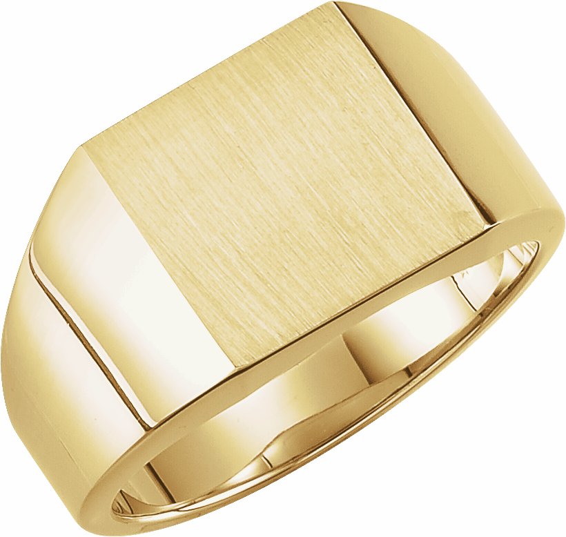 9591 / 14K Yellow / Square / 12 X 12 Mm / Brush Finished / Polished / Signet Ring