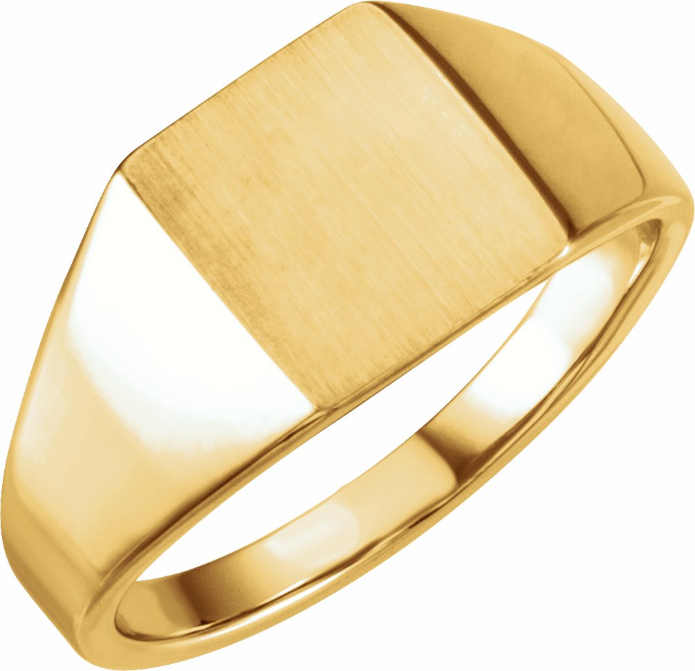 9828 / 14K Yellow / 12 X 10 Mm / Brush Finished Top / Polished / Signet Ring