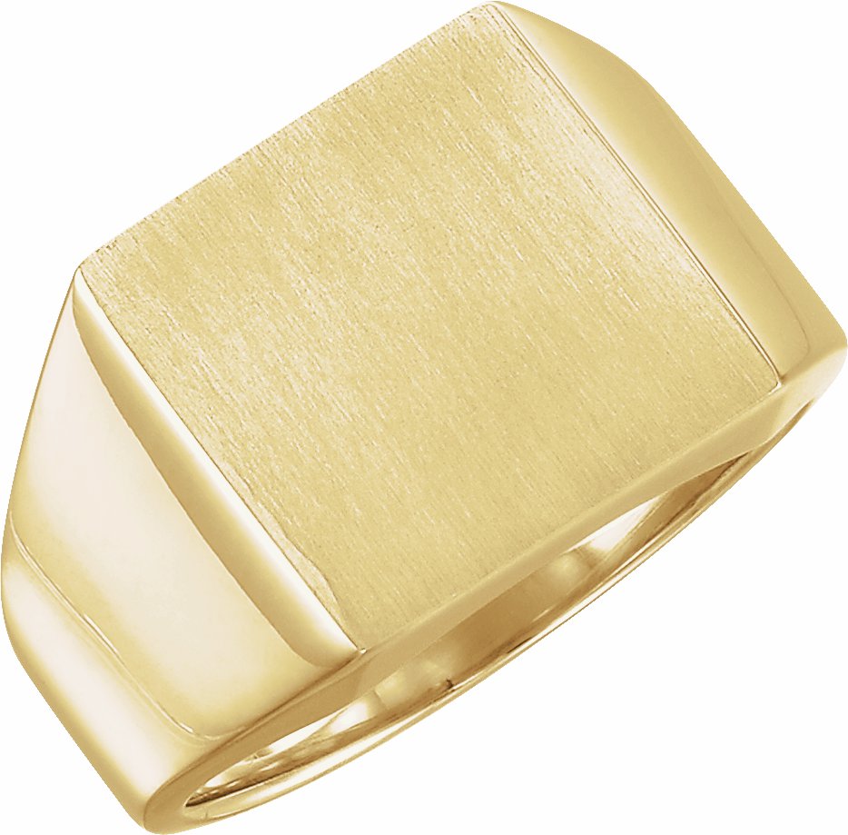 9591 / 14K Yellow / Square / 14 X 14 Mm / Brush Finished / Polished / Signet Ring