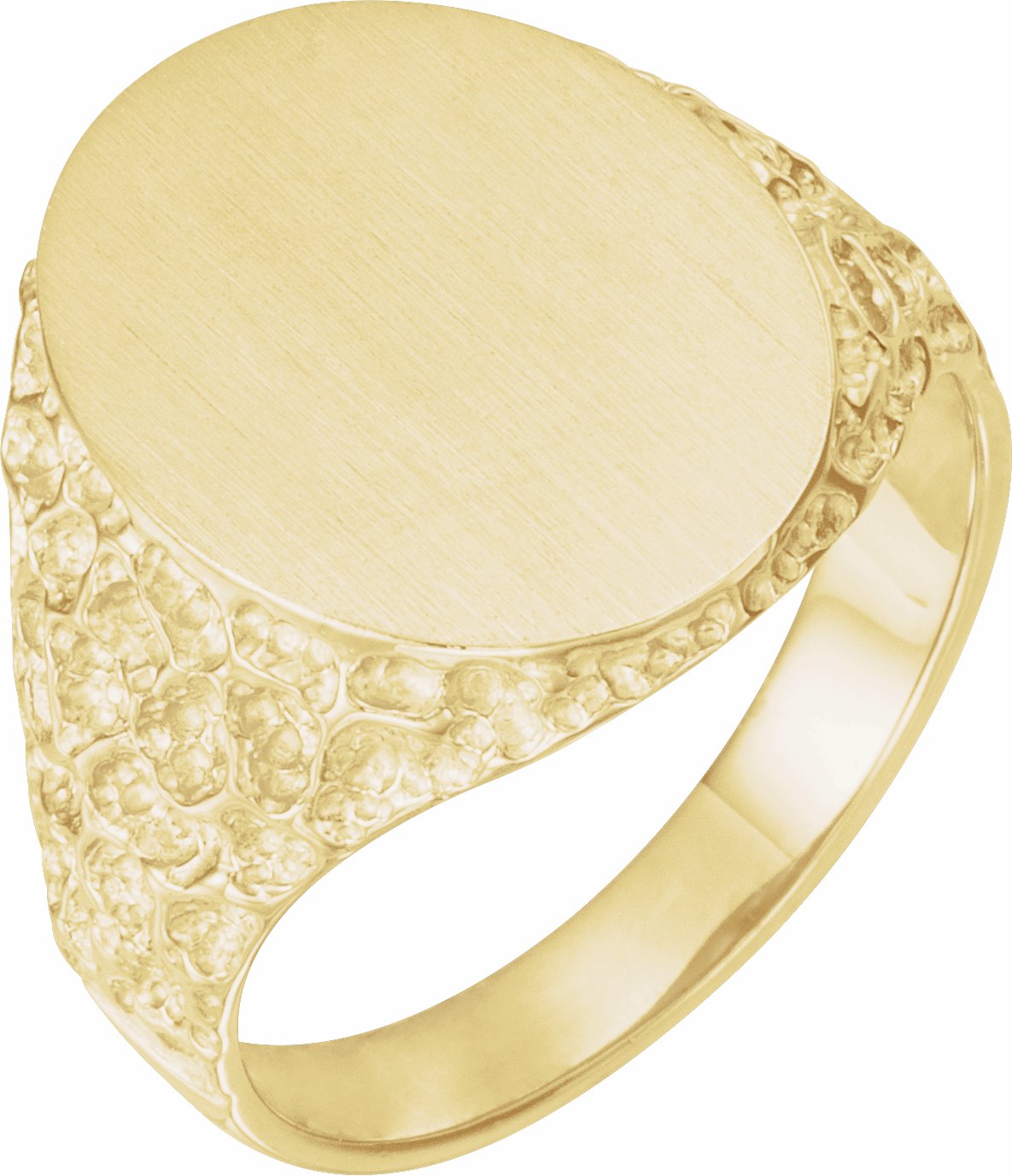 9443 / 14K Yellow / Oval / 19 X 15 Mm / Brush Finished / Polished / Signet Ring