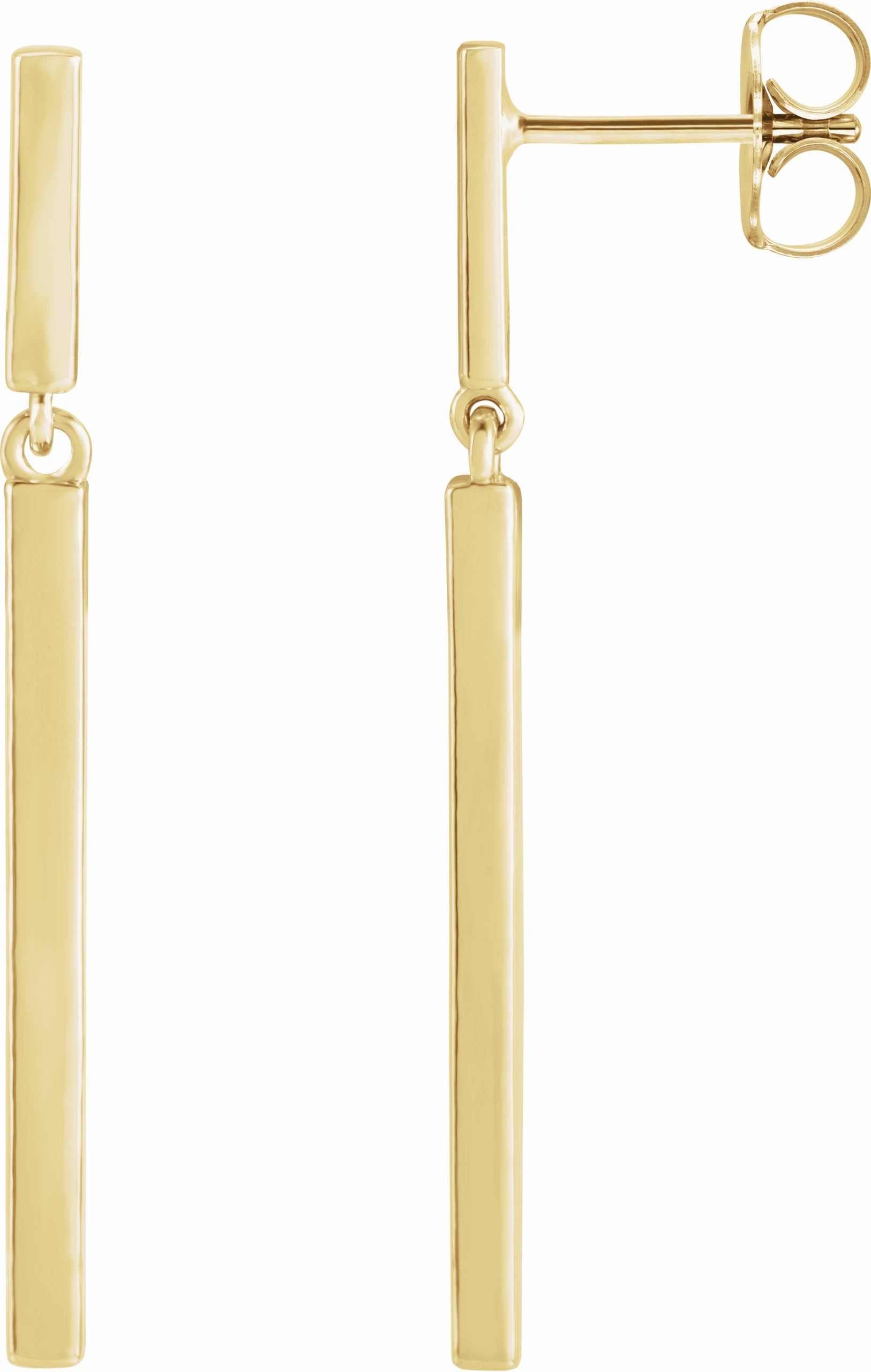 87195 / Earring / 14K Yellow / Pair / Friction Backs Included / Polished / Bar Dangle Earrings