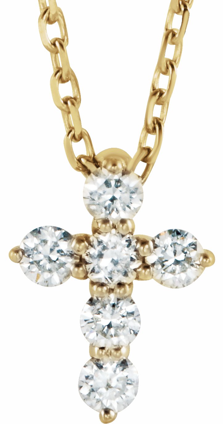 R42359 / Set / Diamond / Round / Necklace / 14K Yellow / I1, G-H :: 1/6 Ctw / 8.7 X 6.6 Mm / 16-18 In / Polished / 1/6 Ctw Diamond Cross Necklace