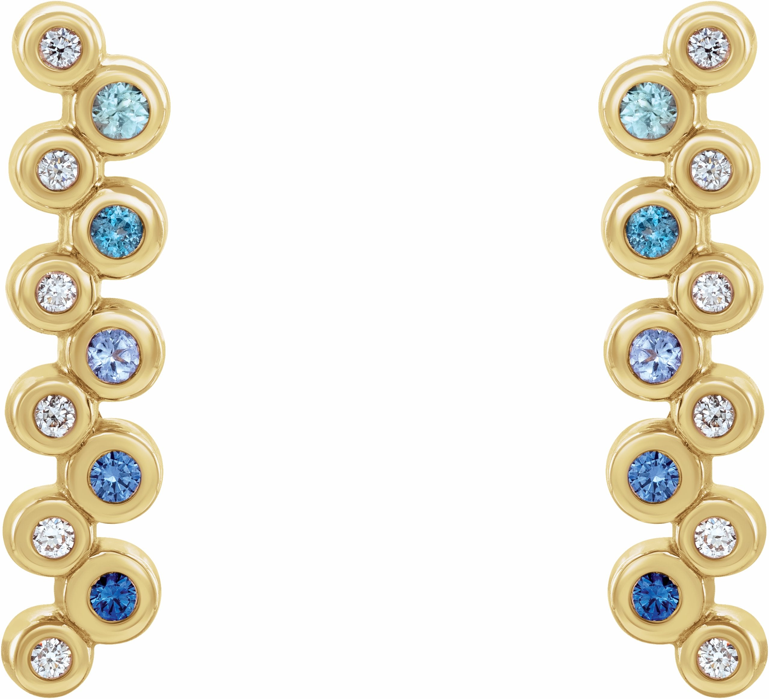 14K Yellow Blue Multi-Gemstone & 1/10 CTW Diamond Bezel-Set Bar Earrings - 86934606P