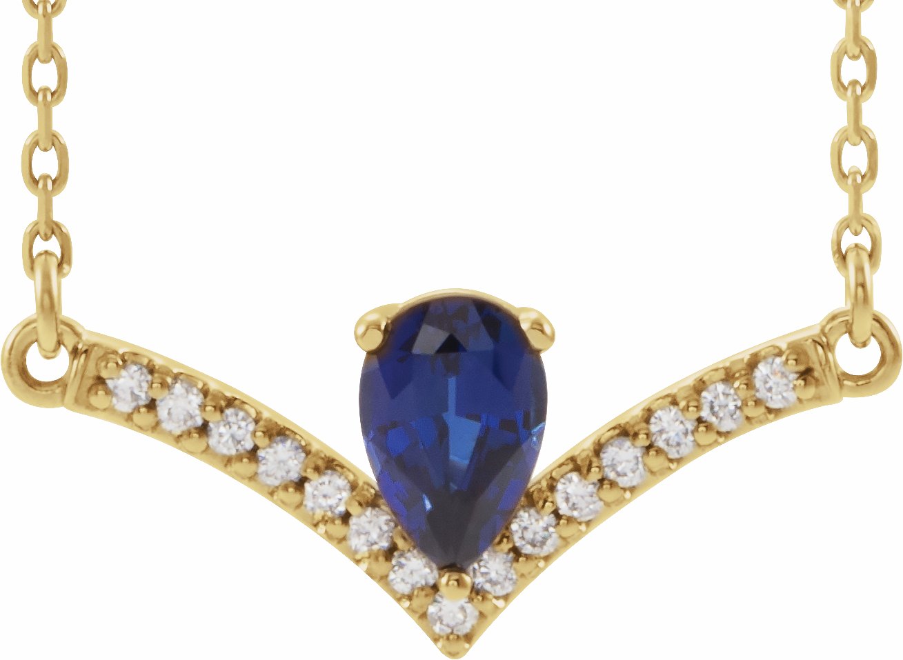 86814 / Necklace / Set / 14K Yellow / Blue Sapphire / 19.8 X 8.2 Mm / 18 In / Polished / Genuine Blue Sapphire And .06 Ctw Diamond Necklace