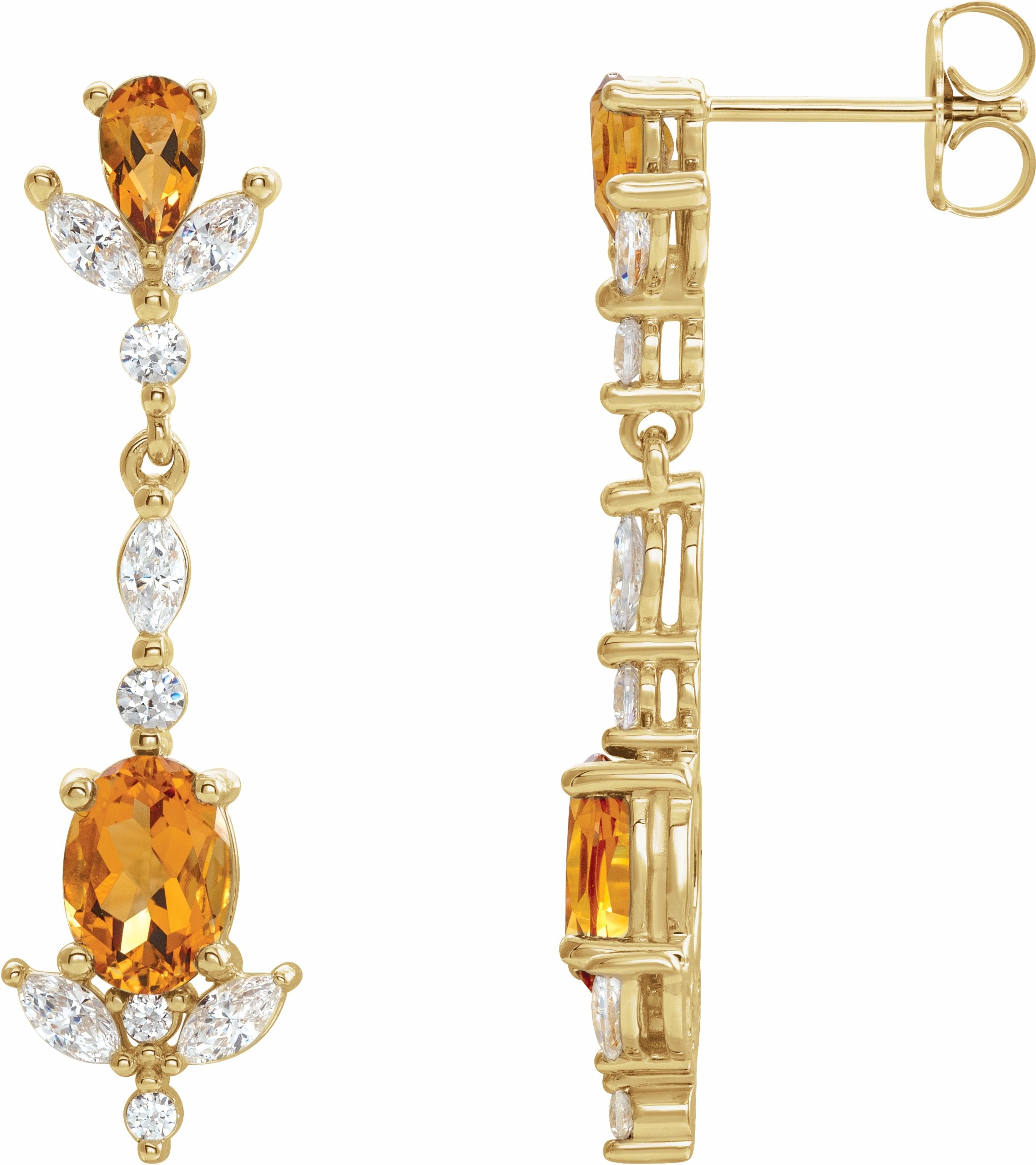 86907 / Set / 14K Yellow / Citrine / Pair / Polished / Genuine Citrine And 3/4 Ctw Diamond Earrings