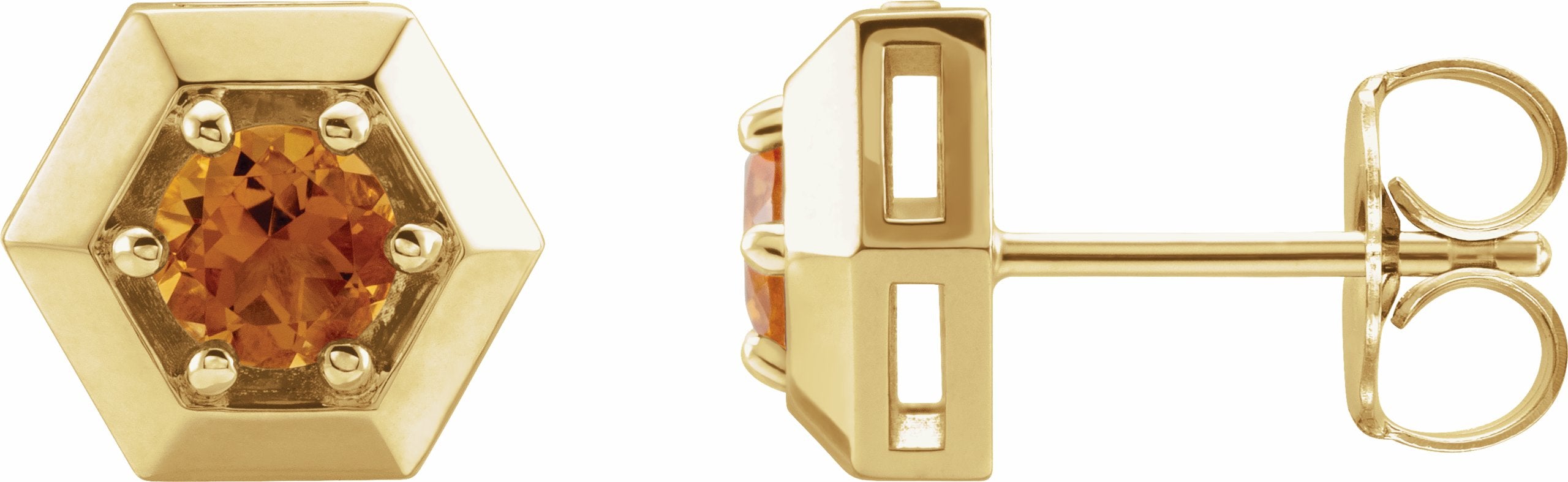 87127 / 14K Yellow / Set / Round / Citrine / Pair / Friction Post / Friction Backs Included / 6-Prong / Polished / Solitaire Hexagon Stud Earrings