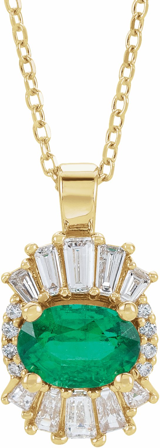 86970 / Necklace / Set / 14K Yellow / Emerald / 16.1 X 9.3 Mm / 16-18 In / Polished / Genuine Emerald And 1/3 Ctw Diamond Necklace