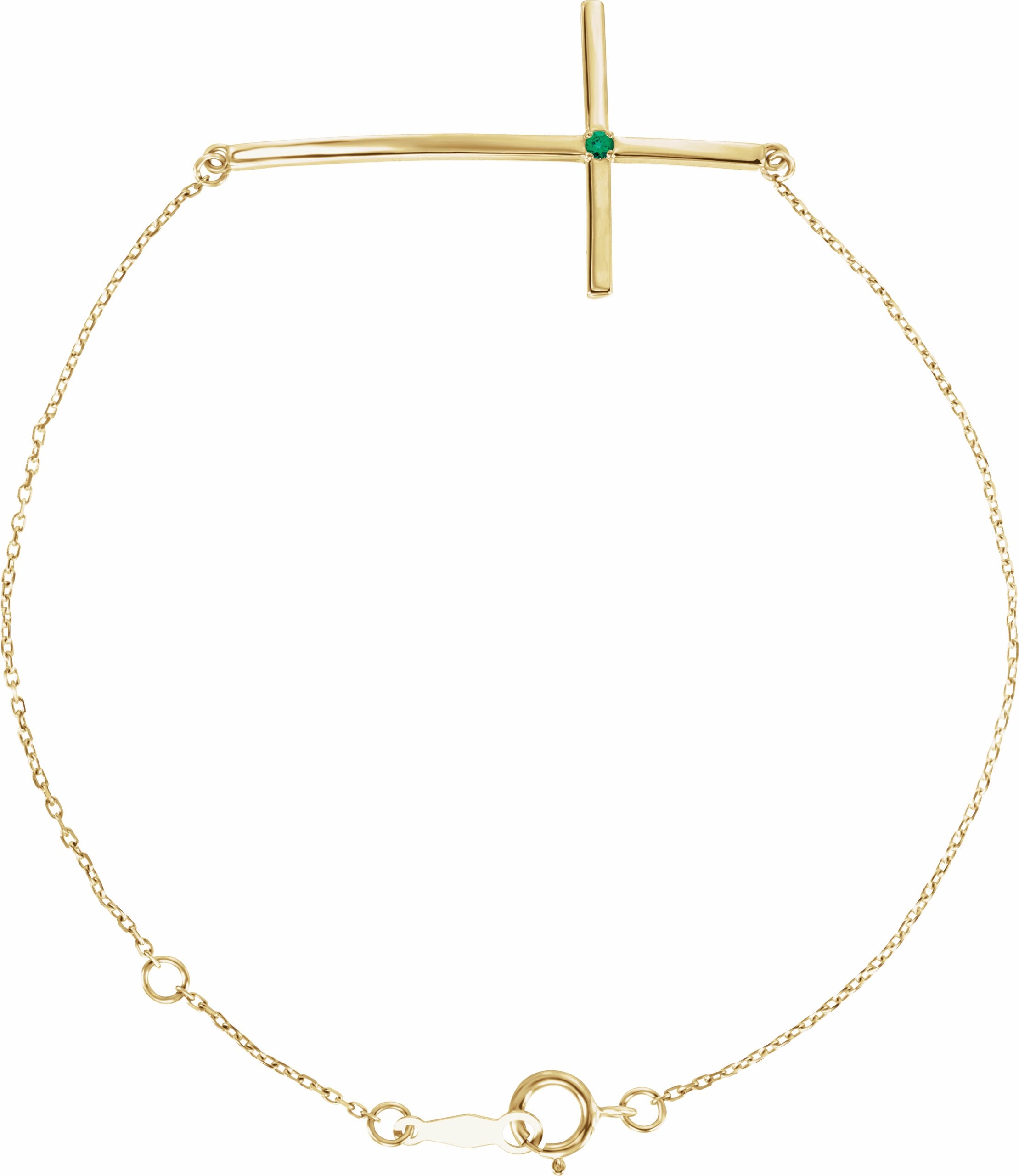 14K Yellow Emerald Sideways Cross Bracelet - R48077621P