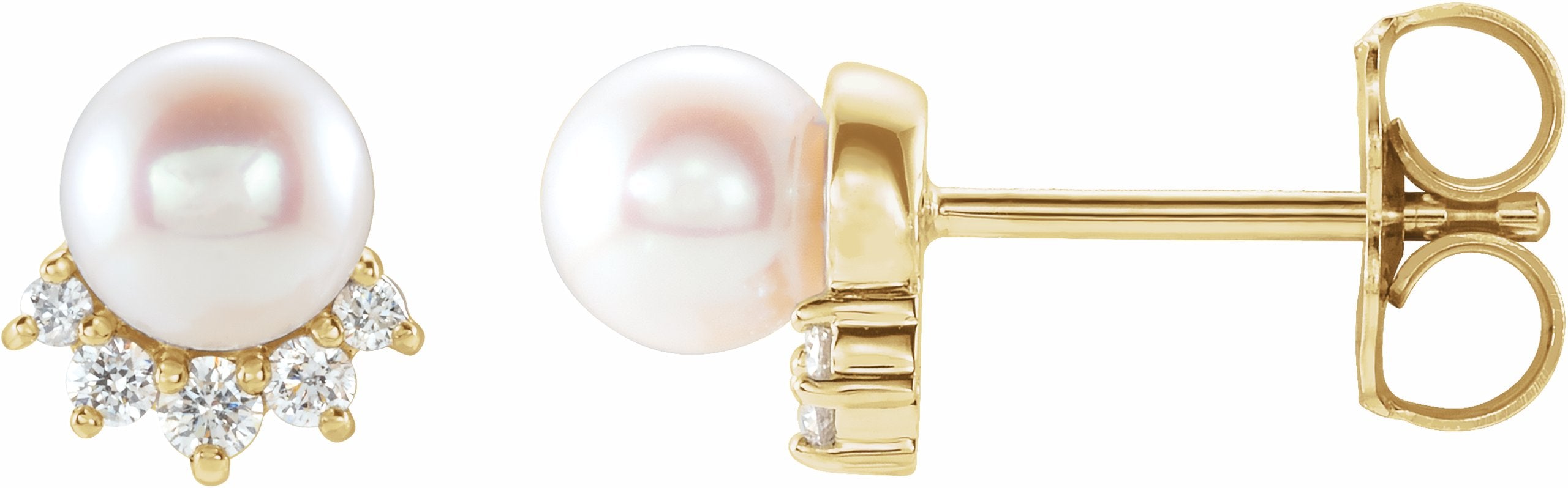 14K Yellow Freshwater Cultured Pearl & .08 CTW Diamond Earrings - 86767606P