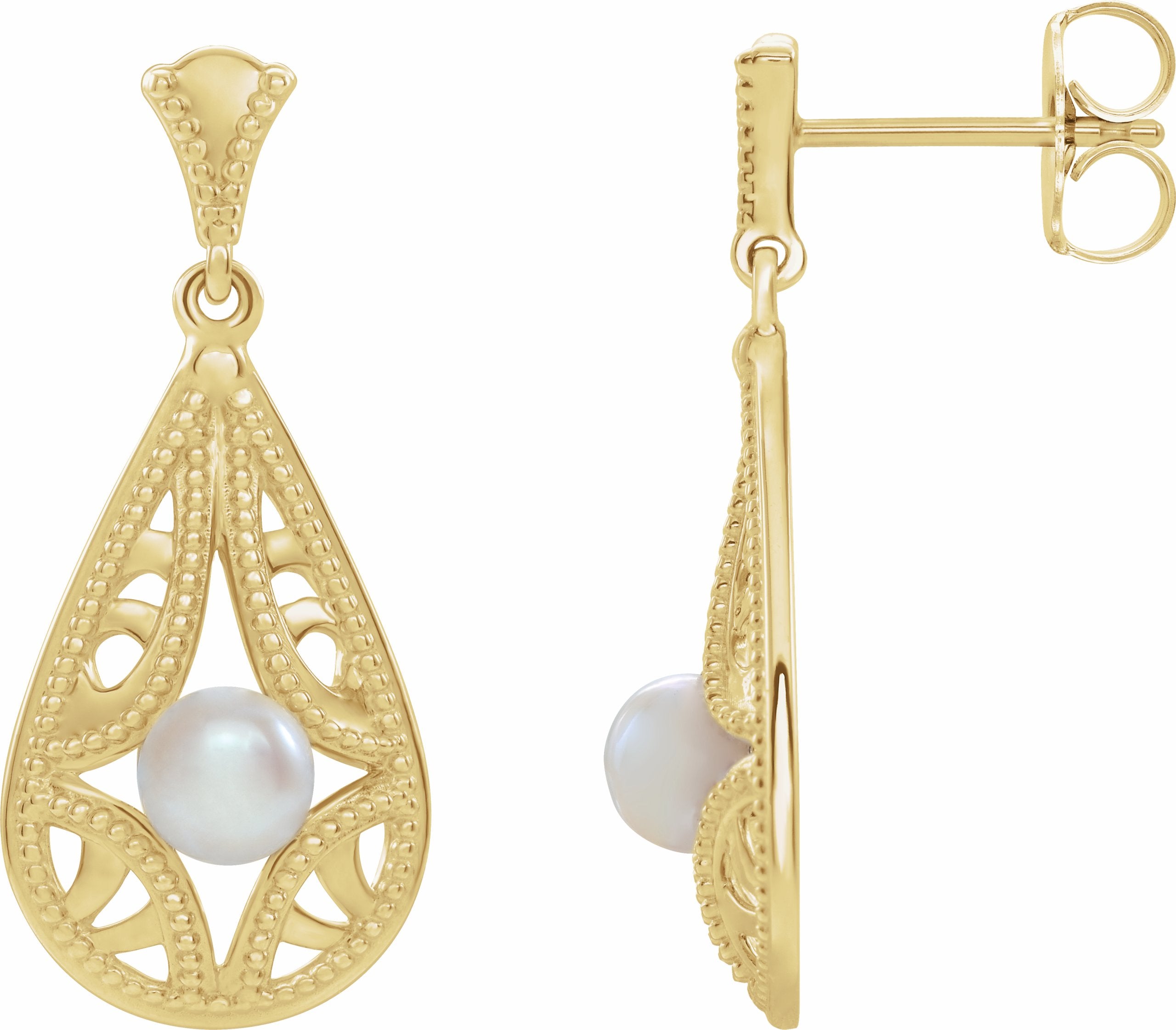 14K Yellow Freshwater Cultured Pearl Vintage-Inspired Earrings - 86932601P