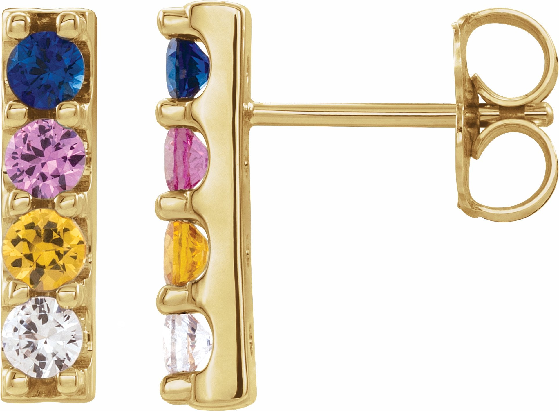 14K Yellow Multi-Color Sapphire Bar Earrings - 86951601P