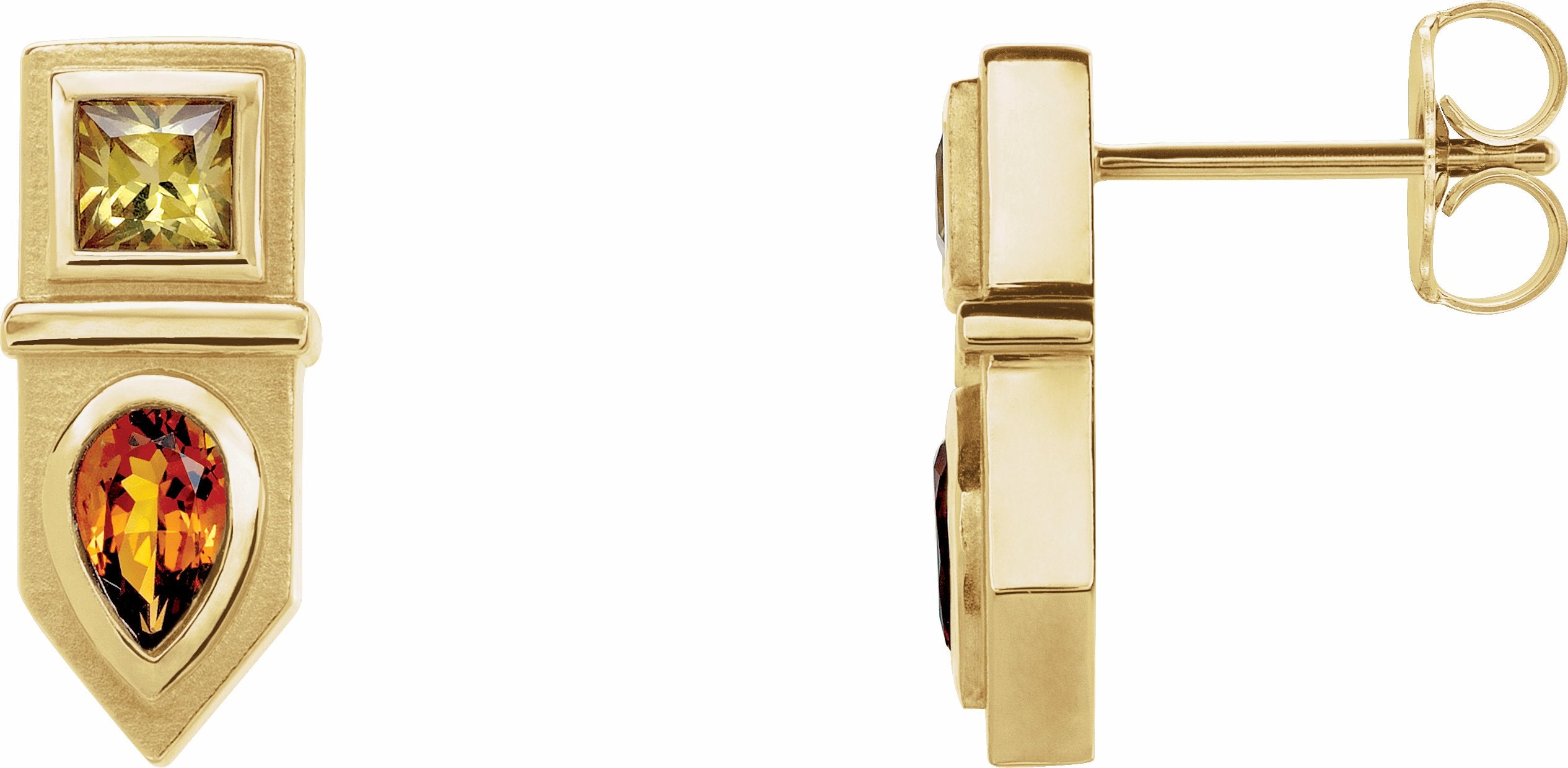 87039 / Set / 14K Yellow / Yellow Multi-Gemstone / Pair / Polished / Genuine Yellow Multi-Gemstone Geometric Bar Drop Earrings