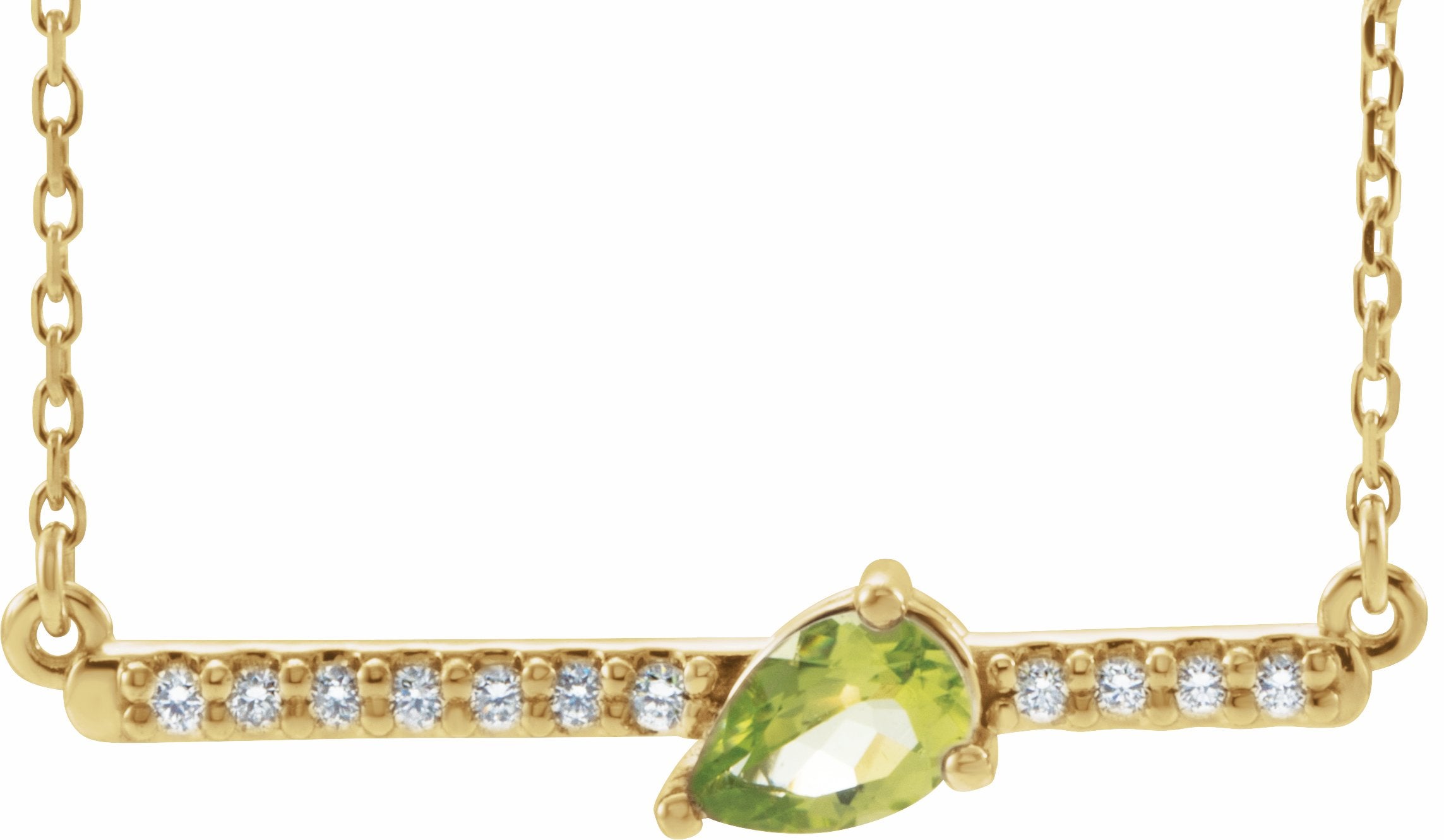 86812 / Necklace / Set / 14K Yellow / Peridot / 6 X 4 Mm / 27.52 X 5.24 Mm / 16 In / Polished / Genuine Peridot And 1/10 Ctw Diamond Necklace