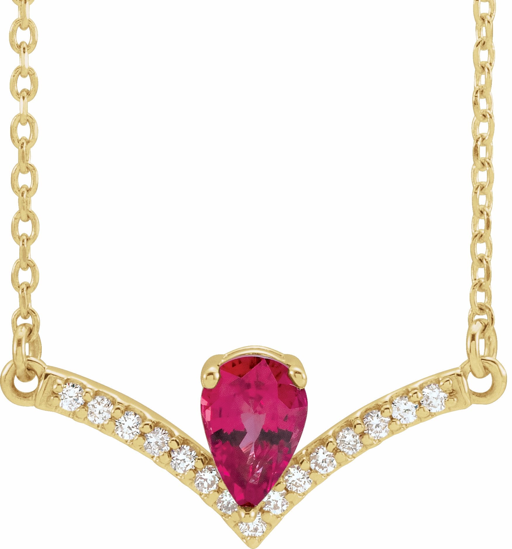 86814 / Necklace / Set / 14K Yellow / Ruby / 19.8 X 8.2 Mm / 16 In / Polished / Genuine Ruby And .06 Ctw Diamond Necklace