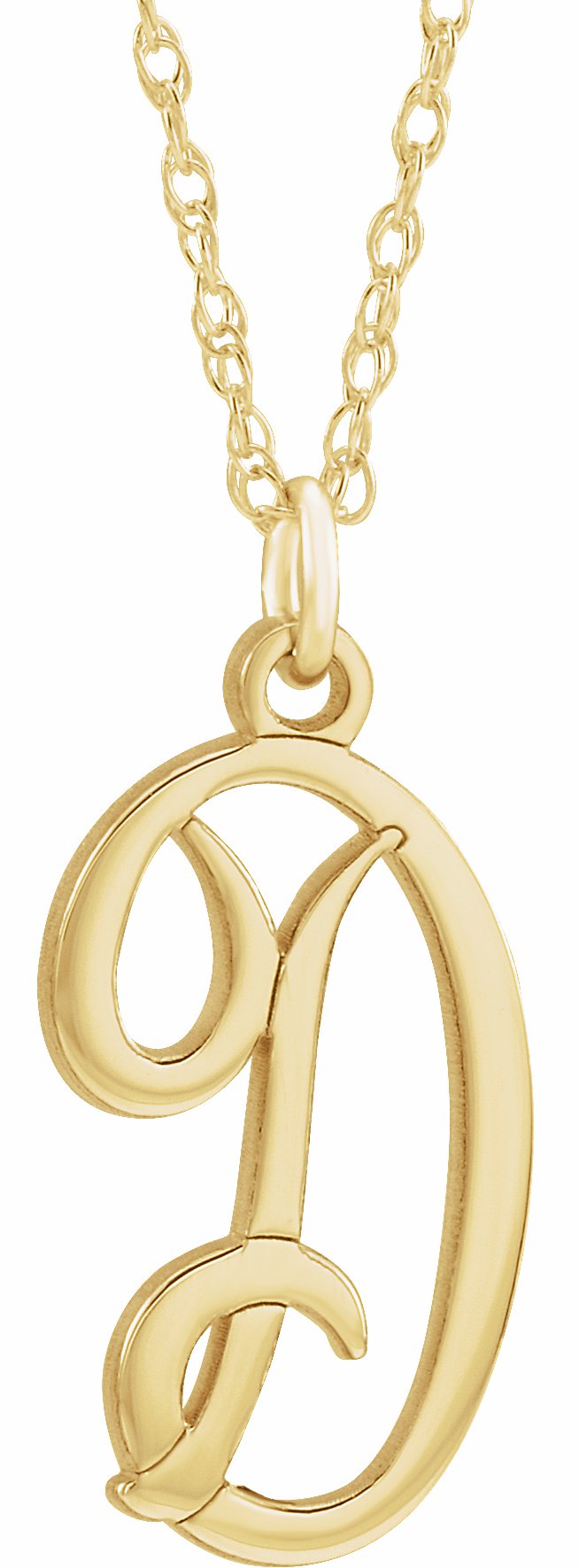 87090 / 14K Yellow / D / 16-18 In / Polished / Script Initial Necklace