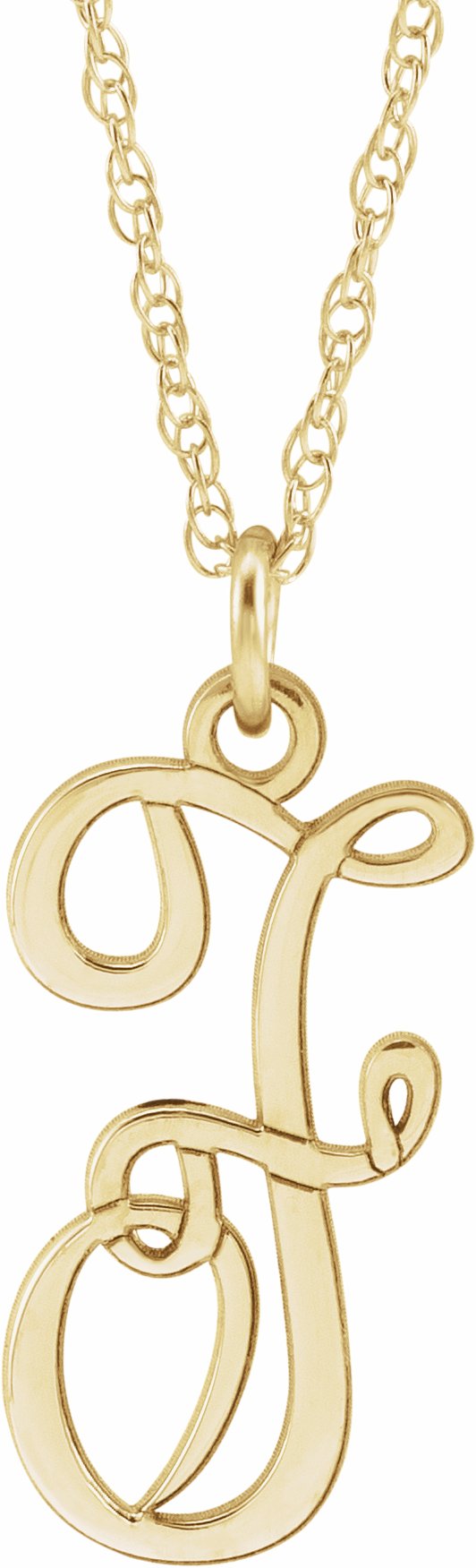 87090 / 14K Yellow / F / 16-18 In / Polished / Script Initial Necklace