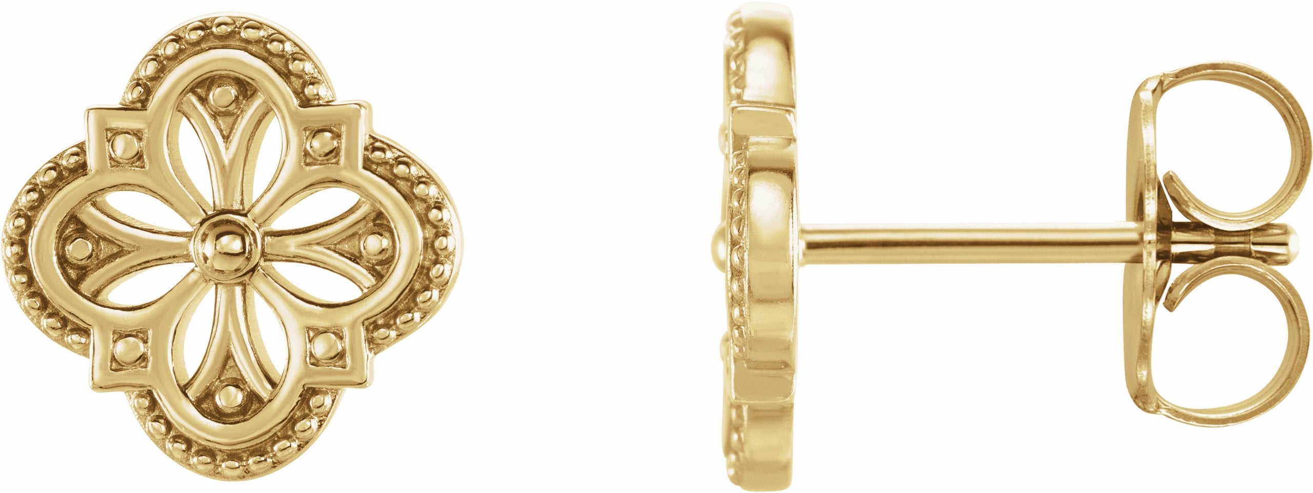 87105 / Earring / 14K Yellow / Pair / Friction Backs Included / Polished / Vintage-Inspired Clover Earrings