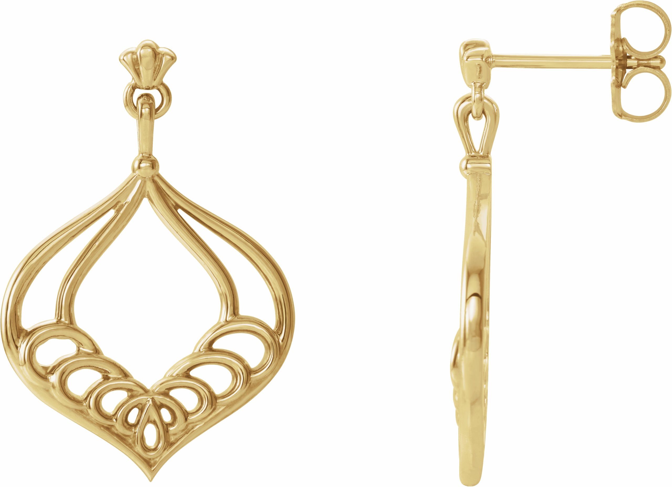 86882 / 14K Yellow / Pair / Polished / Vintage Inspired Dangle Earrings With Backs