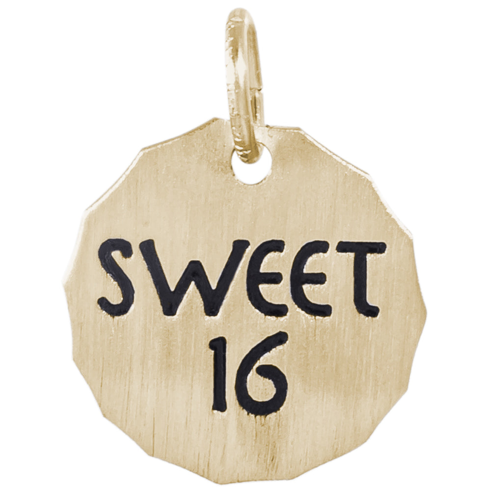 14k Gold Sweet 16 Charm Tag Charm