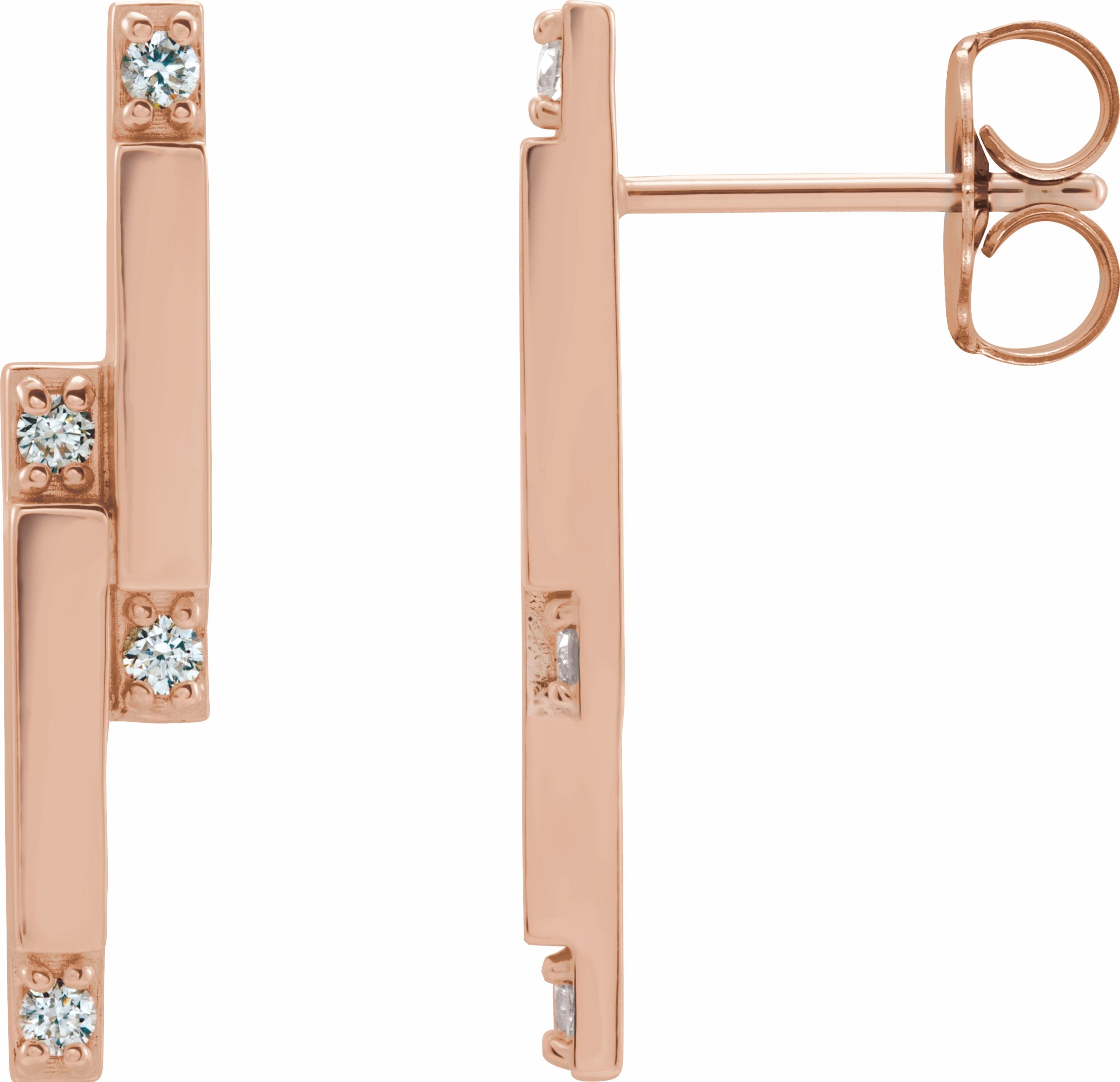 87051 / Earring / Set / Diamond / 14K Rose / Pair / 1/10 Ctw / 1.5 Mm / Friction Backs Included / Polished / 1/10 Ctw Diamond Geometric Drop Earrings