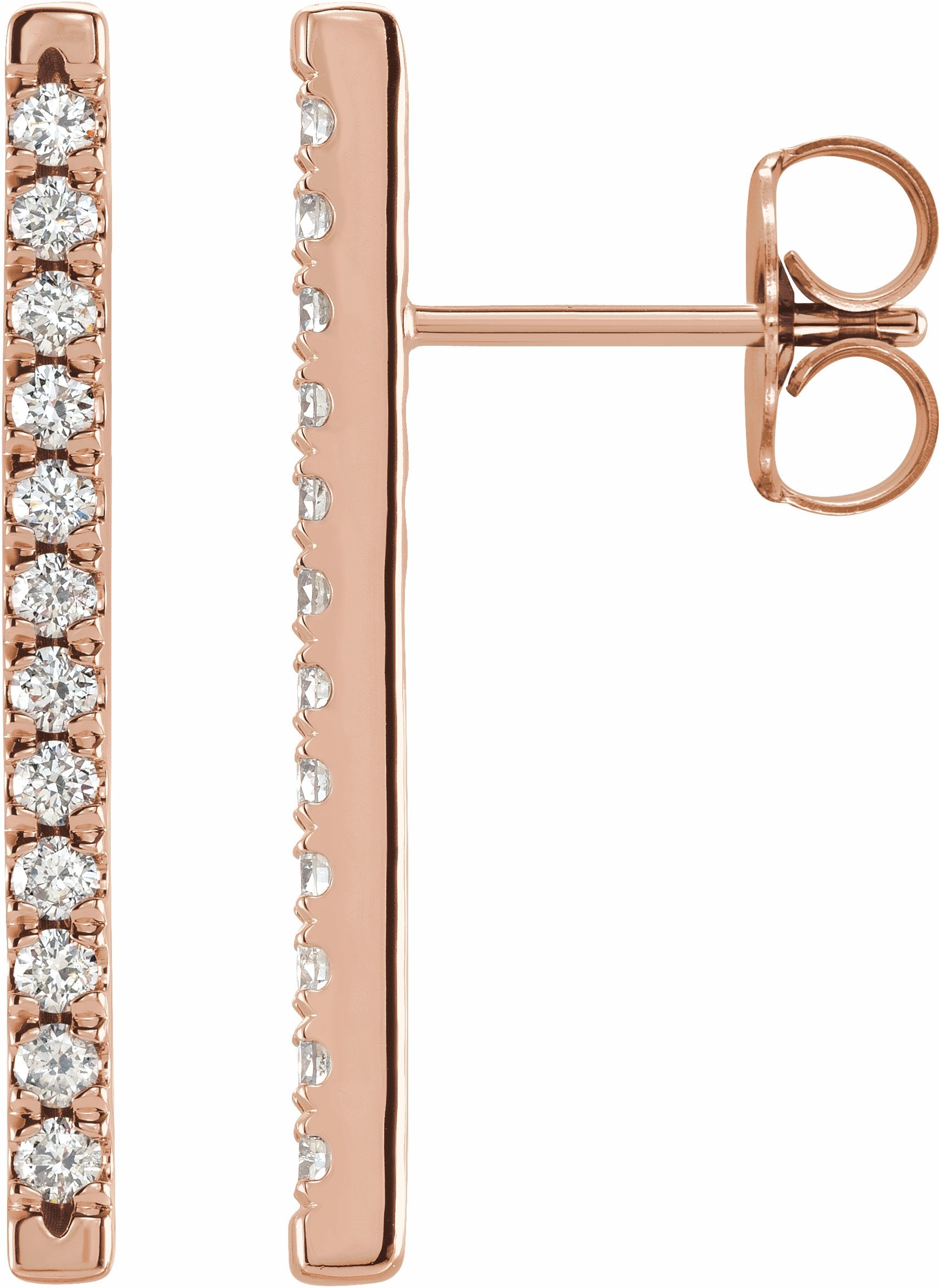 87066 / Set / Diamond / Pair / 23.14 Mm :: 1/3 Ctw / 14K Rose / I1, G-H / Friction Backs Included / Polished / French-Set Diamond Bar Earrings