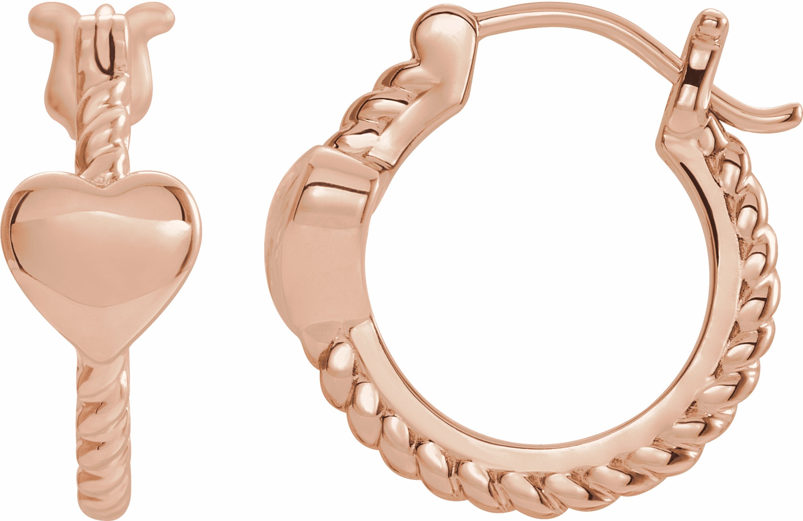 14K Rose 14 mm Heart Rope Hoop Earrings - 653402602P