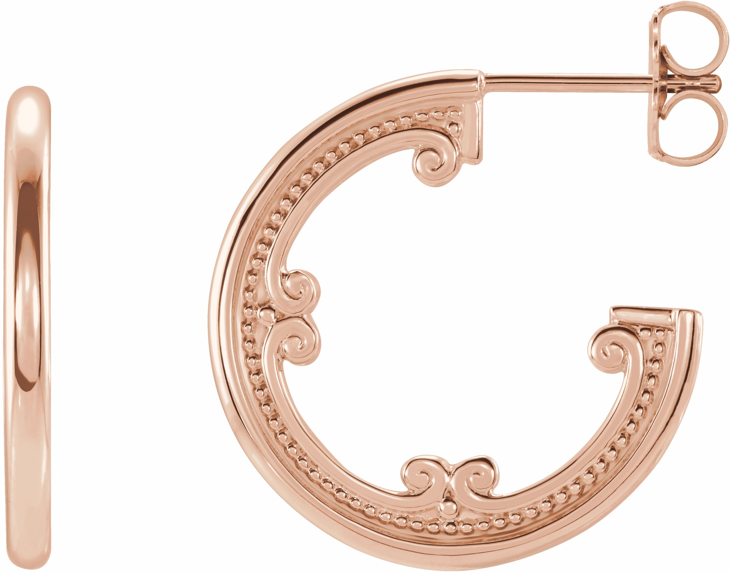 86731 / 14K Rose / Pair / Polished / Vintage-Inspired Hoop Earrings With Backs