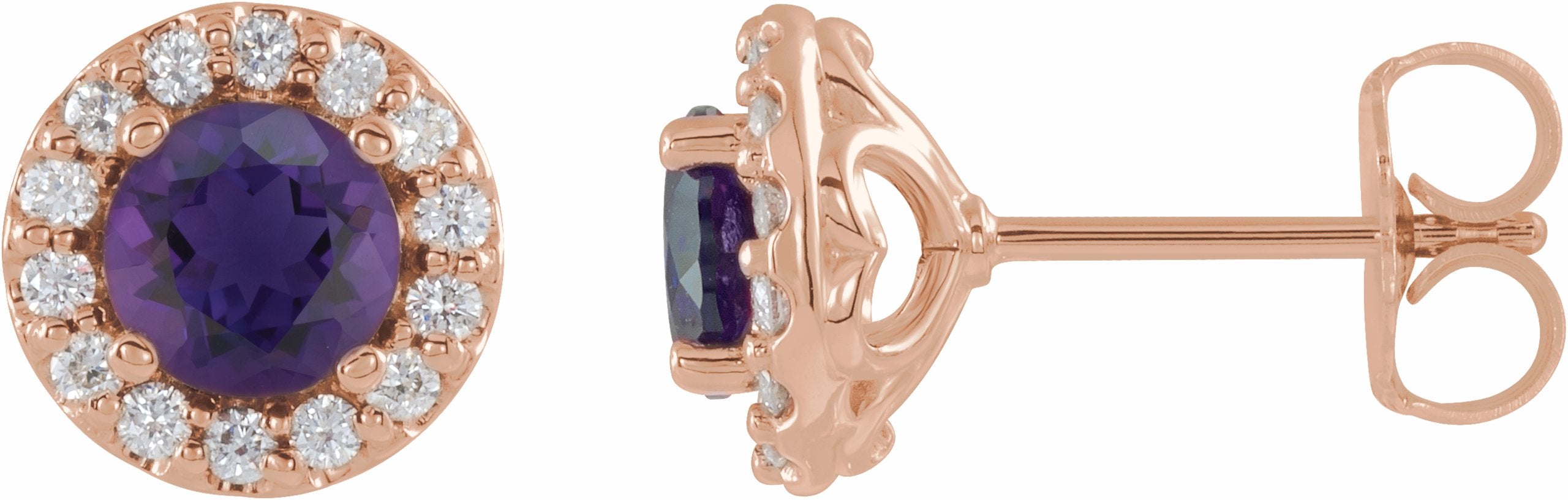 86839 / Earring / Set / Amethyst / Round / 4 Mm / 14K Rose / Pair / Friction Backs Included / Polished / Amethyst And 1/8 Ctw Diamond Earrings