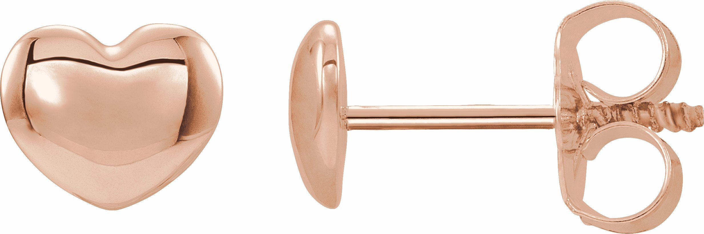 192034 / 14K Rose / Pair / Polished / Puff Heart Earrings With Backs