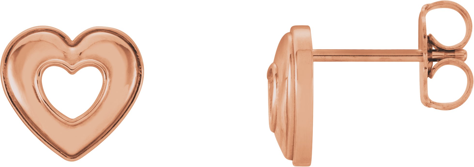 86098 / 14K Rose / 08.00X08.50 Mm / Heart Stud Earrings With Backs