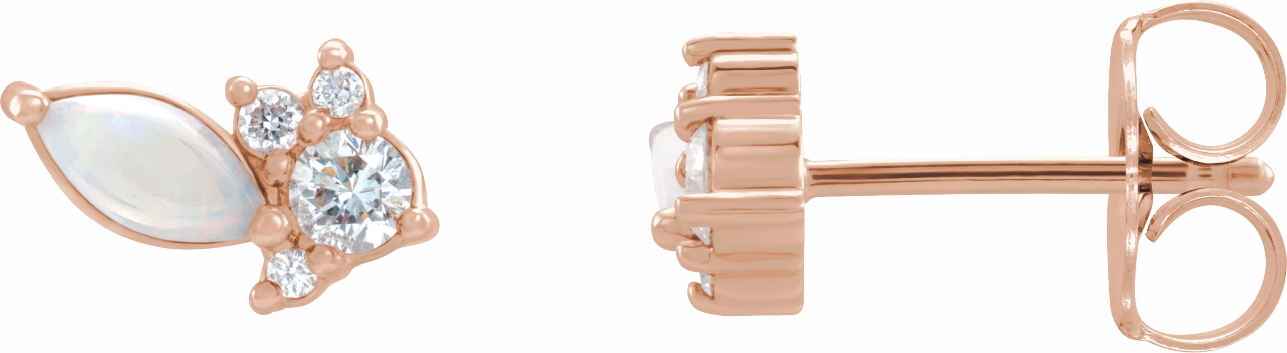 87123 / Earring / Set / White Opal / Marquise / 5 X 2.5 Mm / 14K Rose / Pair / Friction Backs Included / Polished / Genuine White Opal And 1/6 Ctw Diamond Earrings