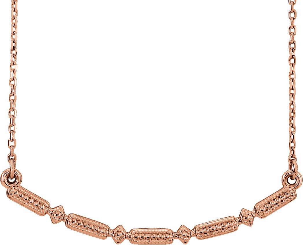 86539 / Necklace / 14K Rose / Polished / Beaded Bar 16-18 Inch Necklace