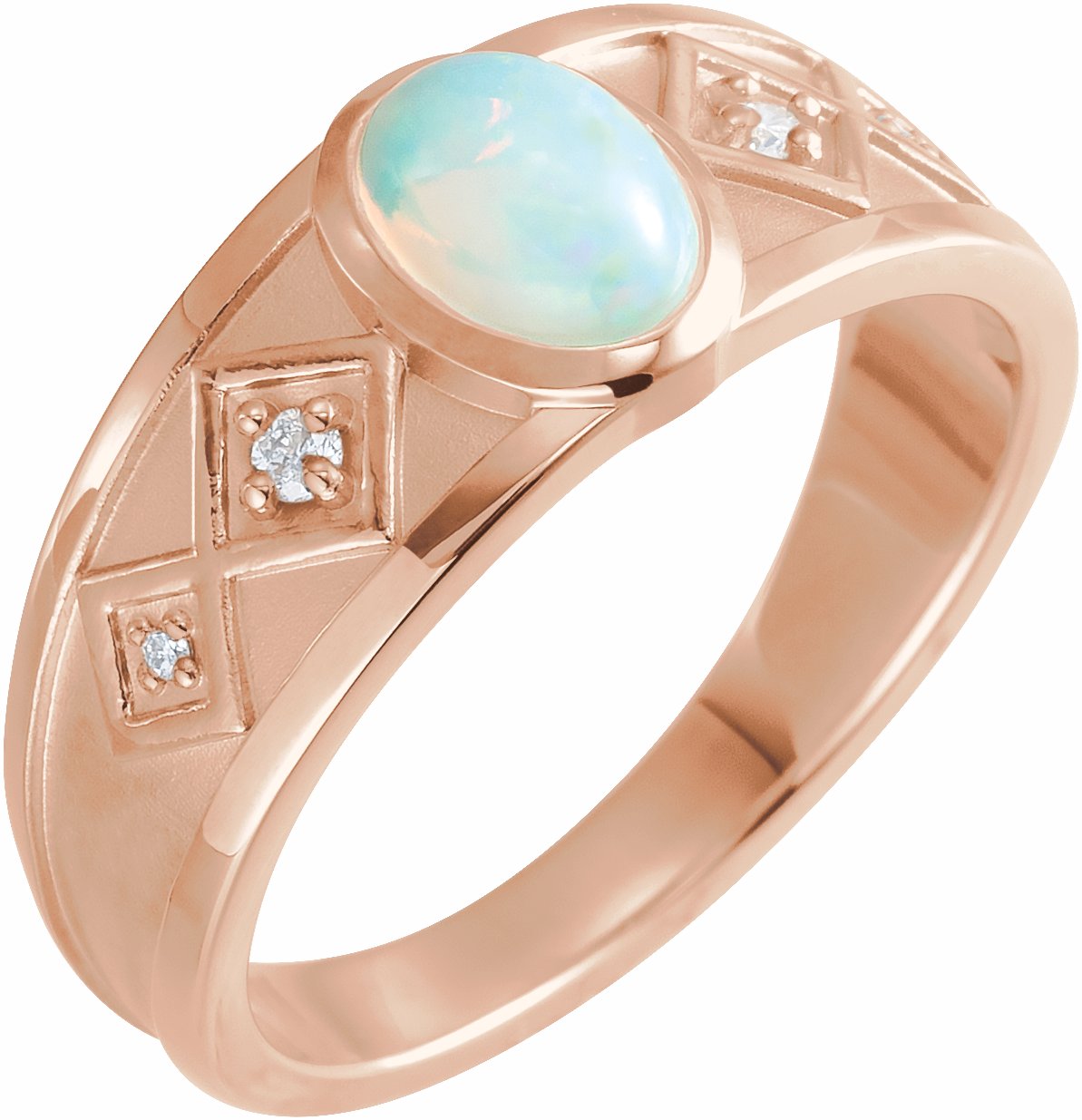 72105 / Set / 14K Rose / White Ethiopian Opal / Polished / Genuine White Ethiopian Opal And .05 Ctw Diamond Ring