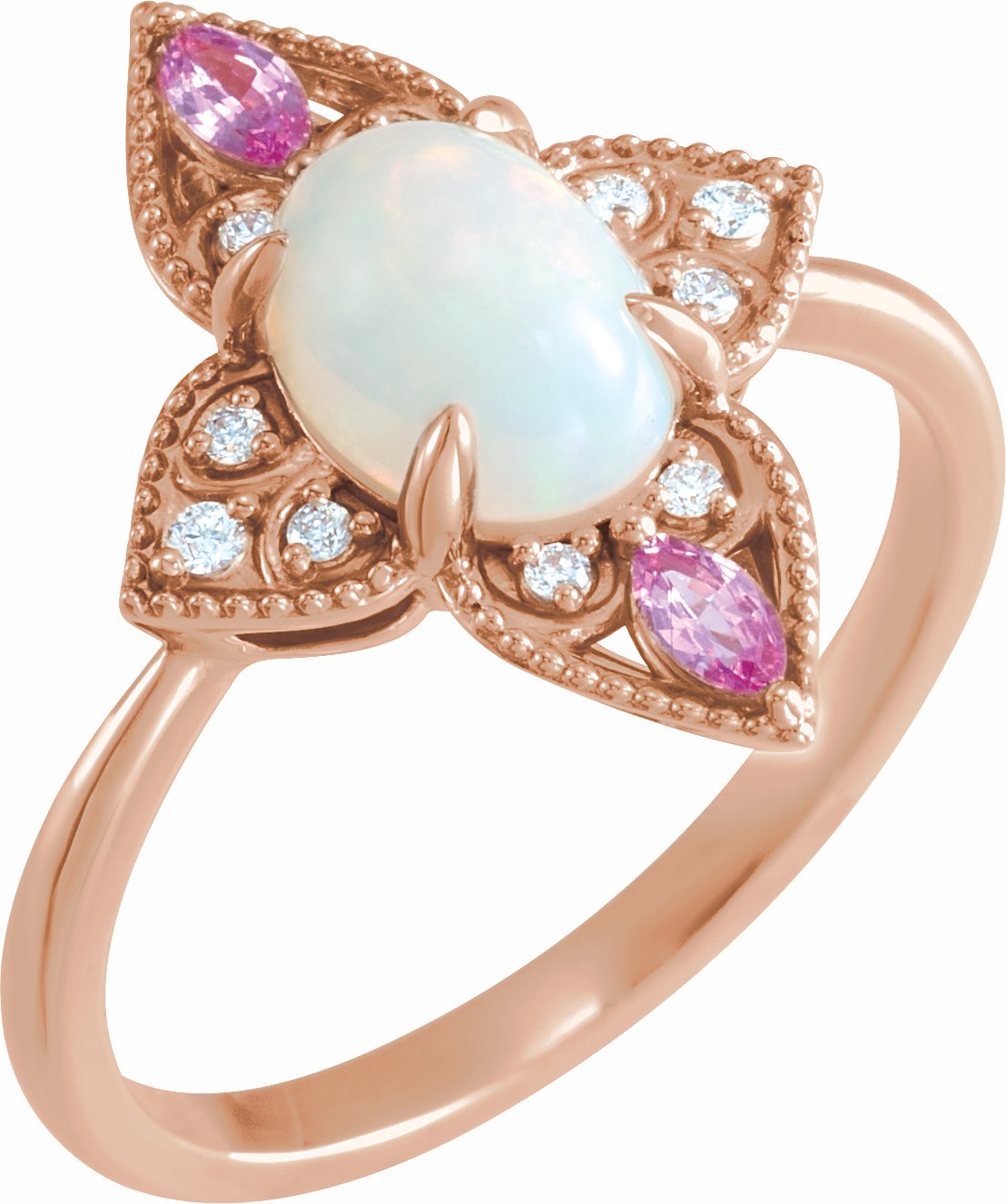 14K Rose Ethiopian Opal, Pink Sapphire & .05 CTW Diamond Vintage-Inspired Ring - 72095602P
