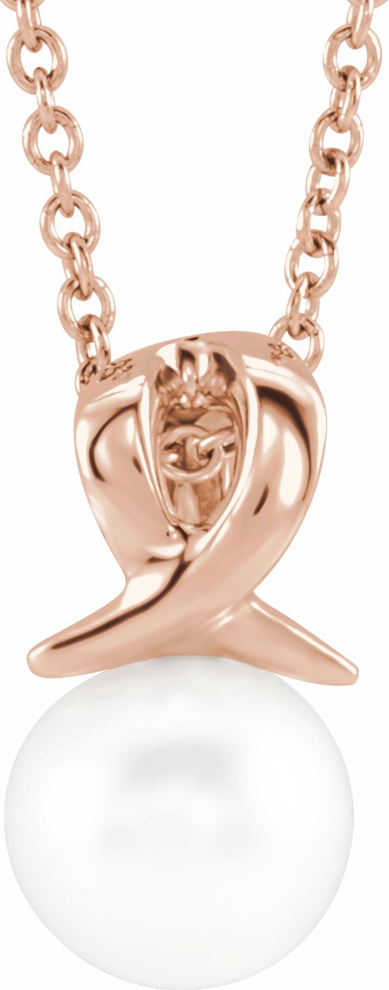 86747 / Necklace / Set / 14K Rose / Polished / White Freshwater Cultured Pearl Bypass Necklace