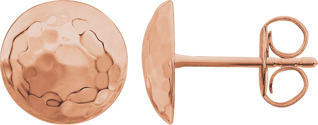 86081 / 14K Rose / Pair / 9.2Mm Hammered Disk Stud Earrings