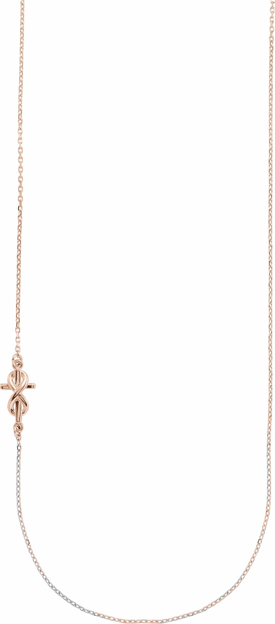 86711 / 14K Rose / Polished / Infinity Inspired Off-Center Sideways Cross Necklace