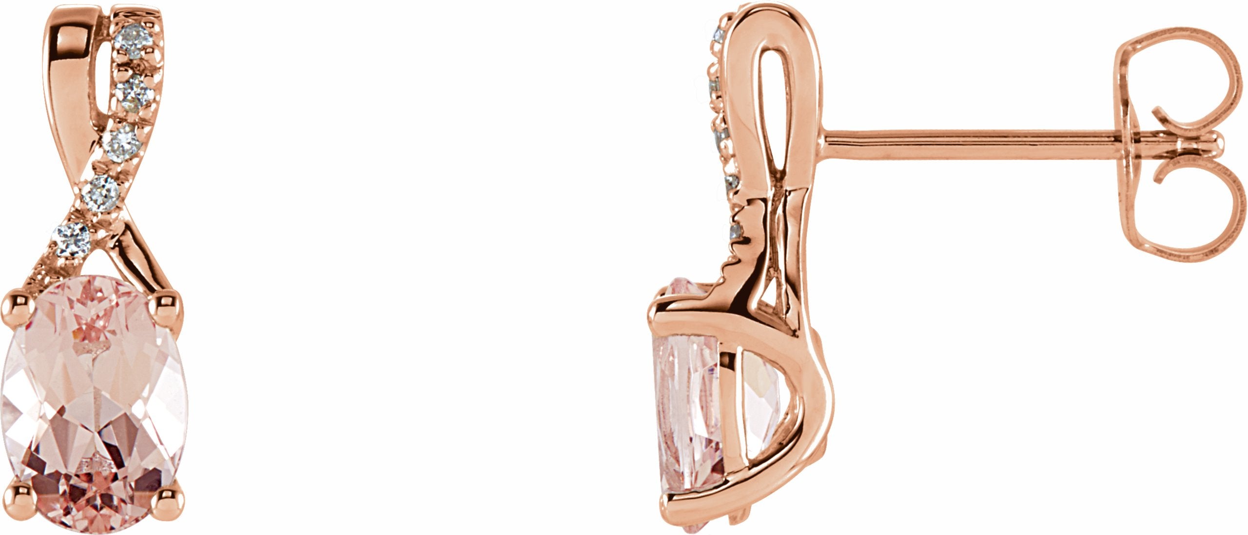 651503 / Set / 14K Rose / Pair / Polished / Genuine Morganite And .05 Ctw Diamond Earrings With Backs