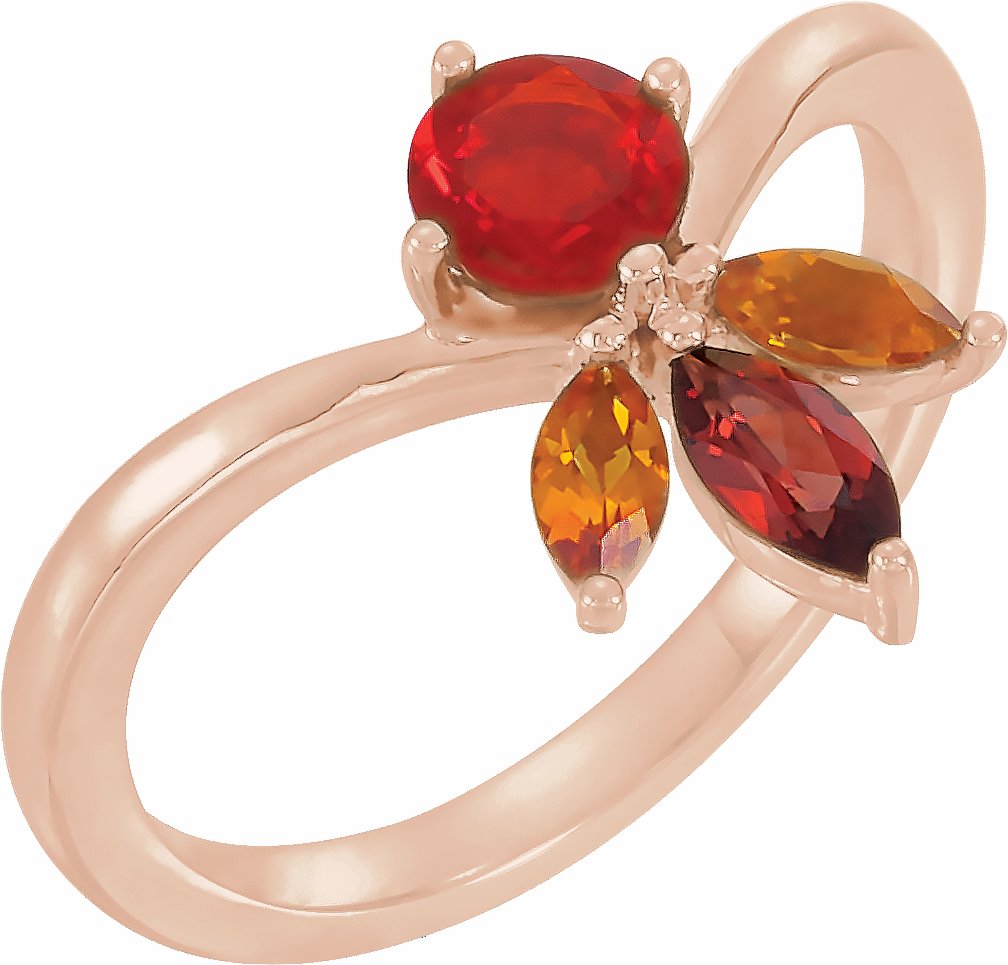 72045 / Set / 14K Rose / Polished / Mexican Fire Opal, Mozambique Garnet And Citrine Ring