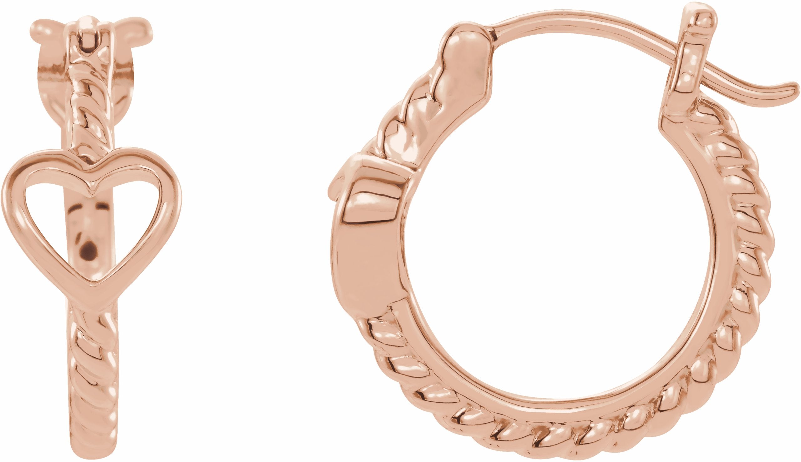 14K Rose Pierced Heart Rope Hoop Earrings - 653407602P