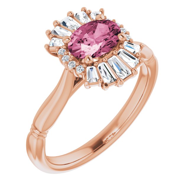 72084 / Ring / Set / 14K Rose / Pink Tourmaline / Oval / 7 X 5 Mm / Si2-Si3, I1, G-H, Ghi :: 1/4 Ctw / Polished / Halo-Style Ring